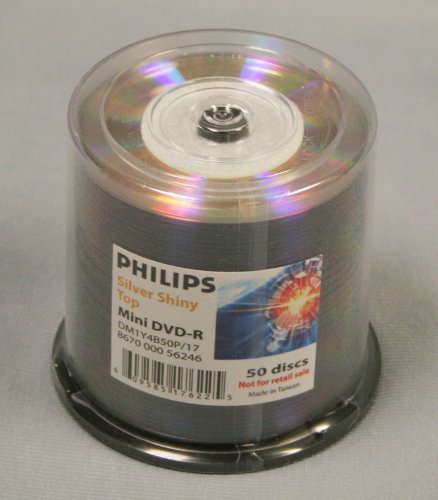 | Best Price on Philips Duplicator Grade DVD-R 8CM 4X Silver Shiny Printable Mini 50PK Spindle - Best Price on Mini DVD Player The best price on Mini DVD Player. The Philips Duplicator Grade DVD-R 8CM 4X Silver Shiny Printable Mini 50PK Spindle Product Description of Philips 8CM Mini DVD-R Silver Shiny disc offers 1.4 gigabytes or 30 minutes of write-once storage capacity. This disc is perfect for DVD-R camcorders, recording up to 30 minutes length in sp mode. It allows the user to silk-screen print on the disc printable surface with full color images and text. Philips, the inventor of the CD/DVD technology offers high-quality, highly reliable qualified media. Philips Duplicator Grade DVD-R 8CM 4X Silver Shiny Printable Mini 50PK Spindle - Best Price on Mini DVD PlayerThe Philips Duplicator Grade DVD-R 8CM 4X Silver Shiny Printable Mini 50PK Spindle - Best Deal @ Mini DVD Player The best products on Mini DVD PlayerPhilips Duplicator Grade DVD-R 8CM 4X Silver Shiny Printable Mini 50PK Spindle feature Each spindle contains 50 pieces of 1.4 GB 4X Sliver Shiny mini DVD-R discsStores 1.4 GB of data or up to 30 minutes recording length for Video recordingIdeal for recording in DVD-R camcorders and computer drives. It can be played in home DVD players and computer DVD drivesDuplication grade. Suitable for silk screen printing, printable to the stacking ringIdeal for DVD-R camcorder; after finalized in your camcorder, you can instantly take it out and play it in most computers or home DVD players The best deal on Mini DVD Player. |